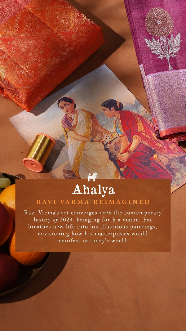 2 productsRavi Varma’s art converges with the contemporary luxury of 2024, giving you a collection that breathes new life into the illustrious paintings of the legendary artist, envisioning how his masterpieces would manifest in today's world. Our campaign narrates a story of heritage and innovation, where the ageless beauty of Ravi Varma's art finds a new expression in the unparalleled luxury of Muhurth's Kanjivaram sarees. This union of art and fashion pays homage to a glorious past while embracing the future with open arms.