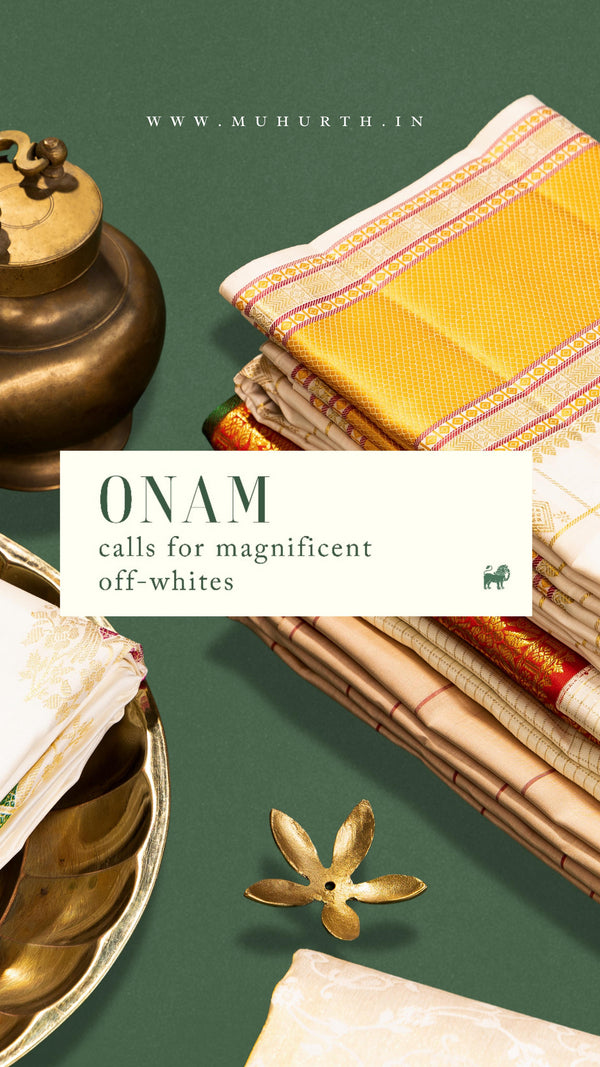 1 productIntroducing the Kanjivaram Festive Onam Collection in Off-White, offering a stunning range from simple to grand designs. Each saree is crafted to elevate the spirit of the festival, embodying elegance and tradition. Dream in splendor and celebrate the true essence of festivity with unmatched grace.