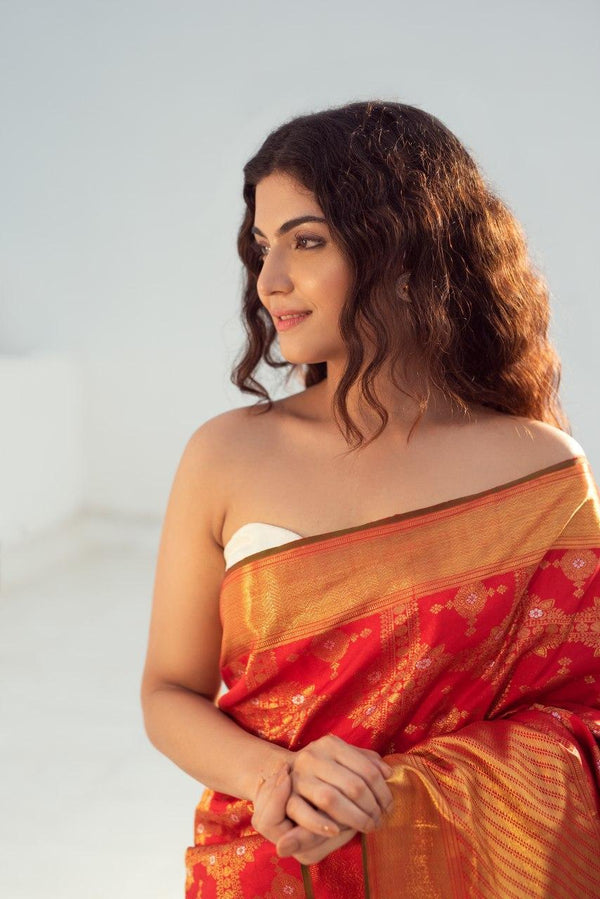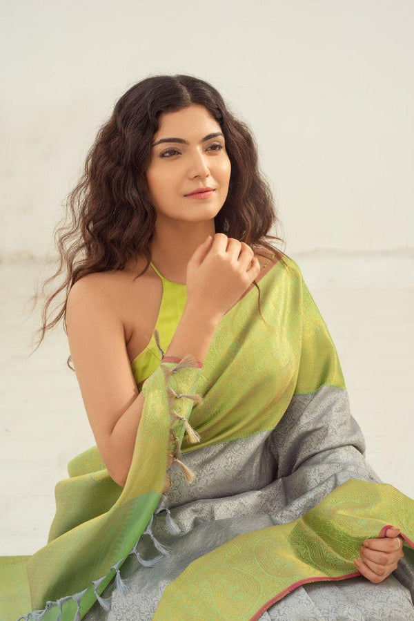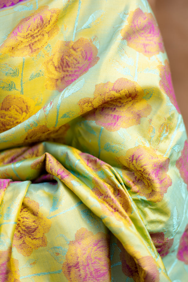 “Renaissance”, a period in European history that brought about a significant change in the interests of art, literature, poetry and so much more. Our Summer Renaissance collection is a similar rendition but in the Kanjivaram world.