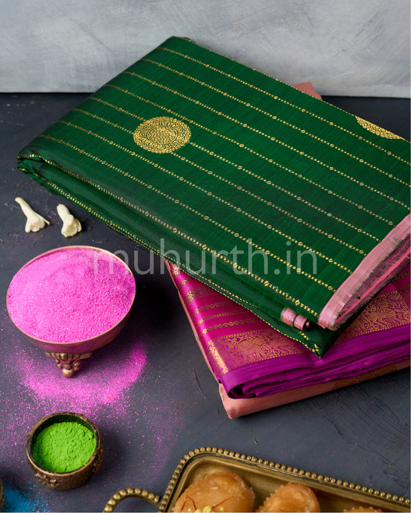 Daylight emphasis on the holistic combination of the two luminous characteristics, sunlight and skylight. This daylight series from Muhurth is a coruscating compilation of colours that portrays the beauty of the spring season and the beautiful floral blossoms that is soothing to our eyes. The enticing and exuberant shades of our daylight collection illuminates elegance and grace. We are well pleased to have launched this subtle yet lustrous kanjivaram saree series that is splendent as each and every woman out there.