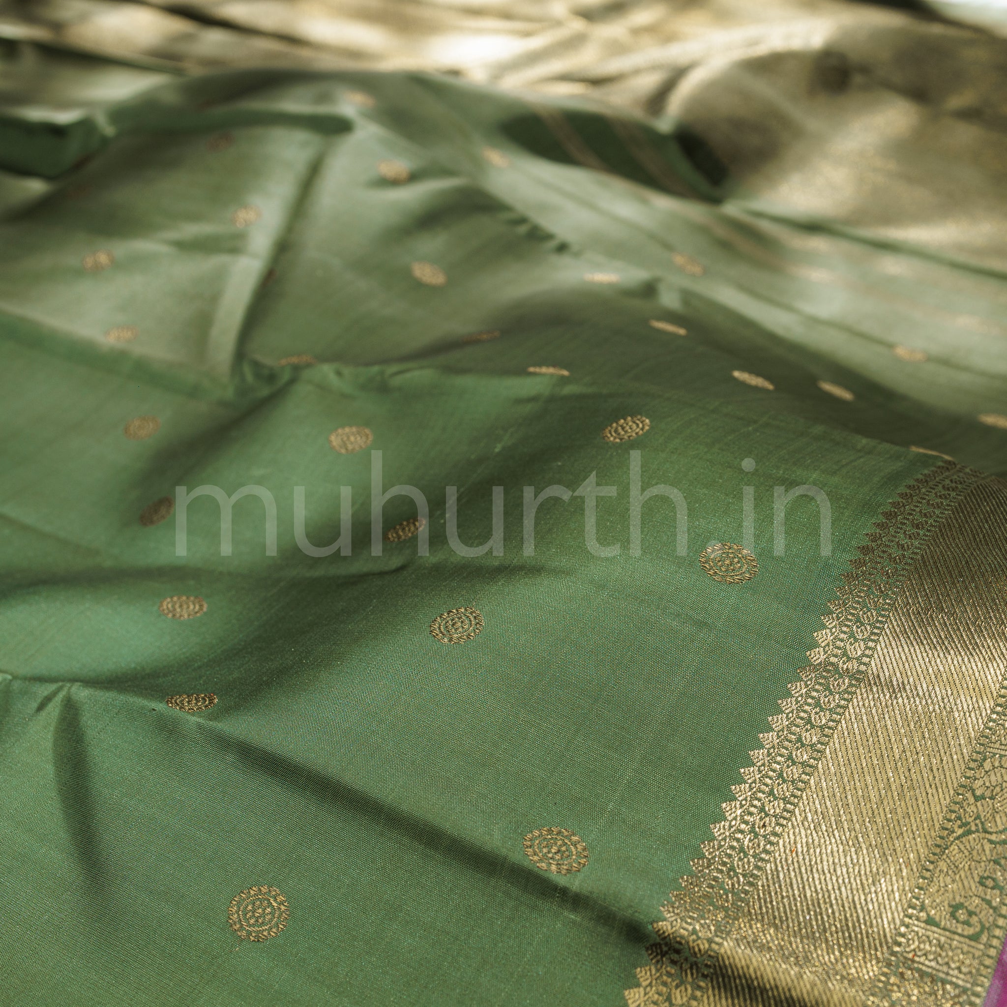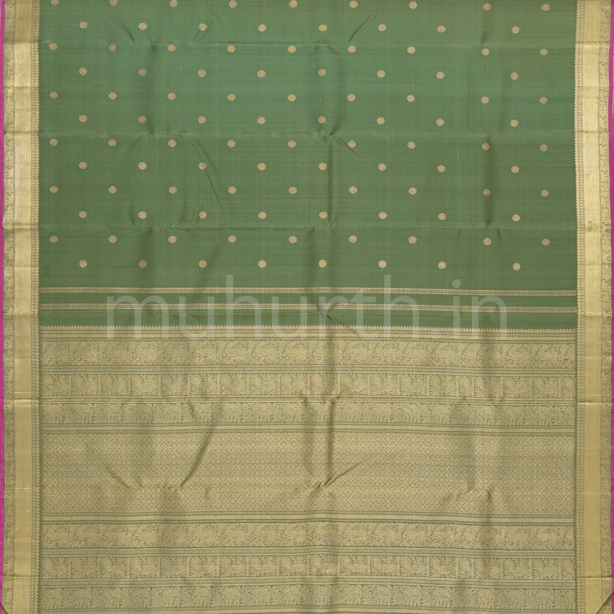 Attributes: Dark Sampanga Pure Zari Kanjivaram Silk Saree with Magenta