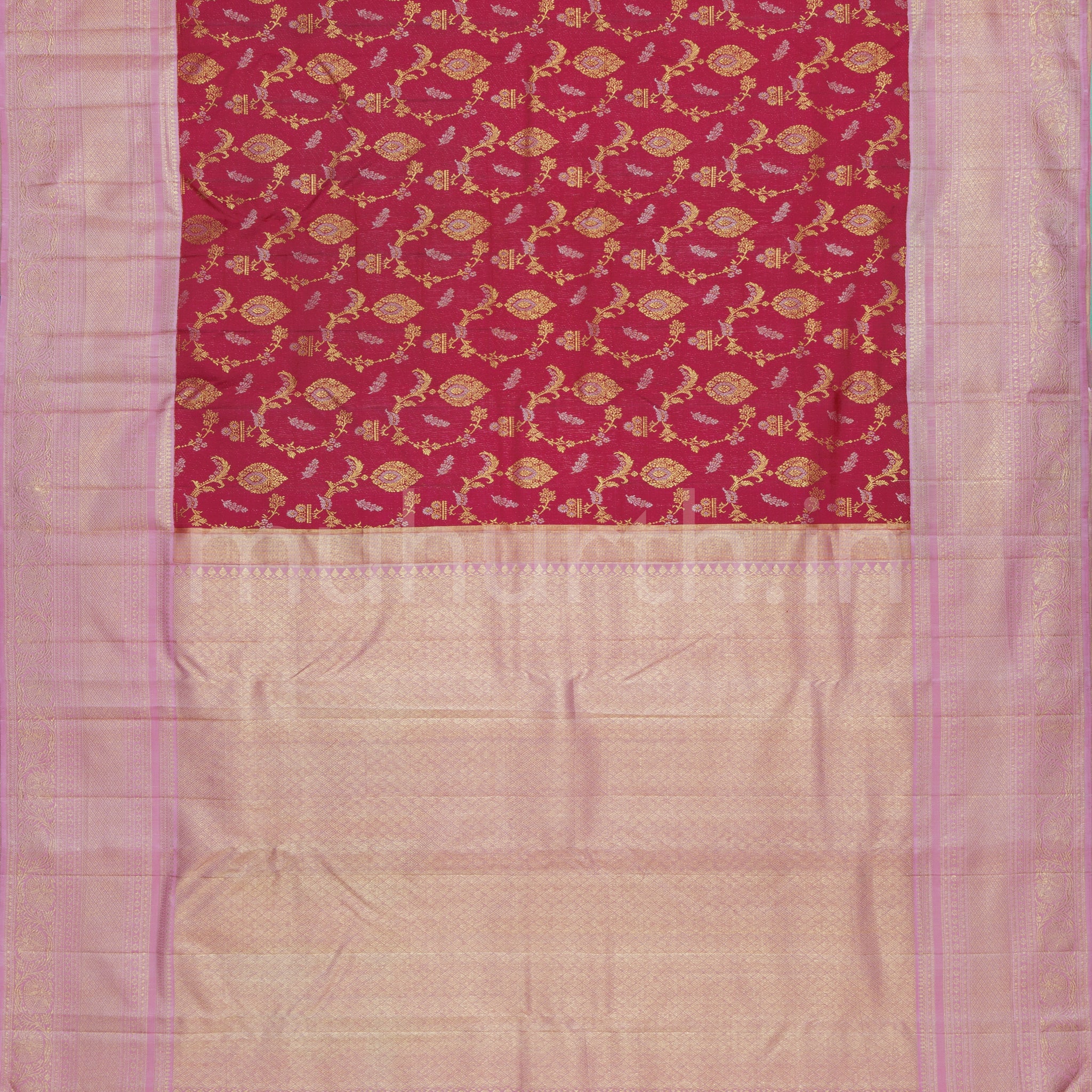 Technique: Meenakari Floral Jaal Brocade in the Body with Intricate Korvai Turning Border