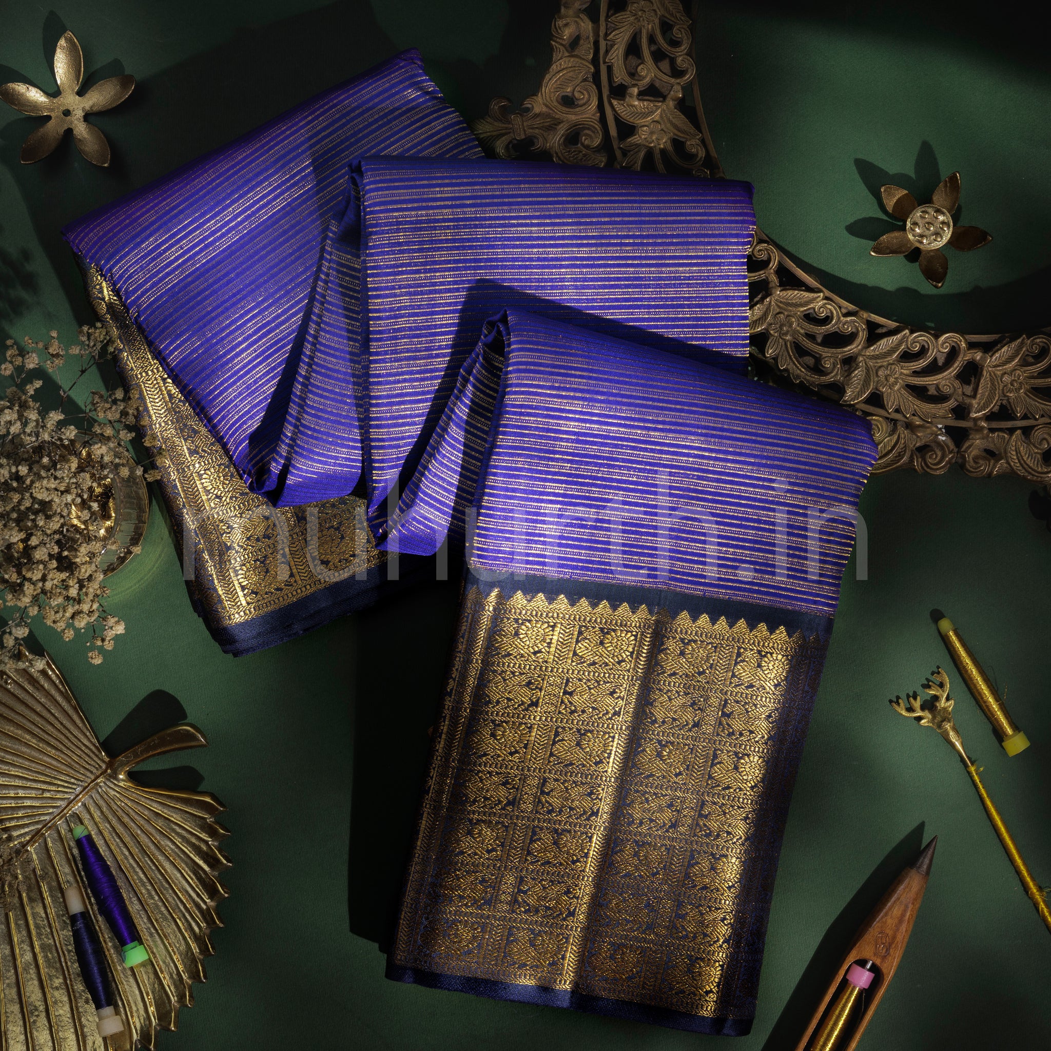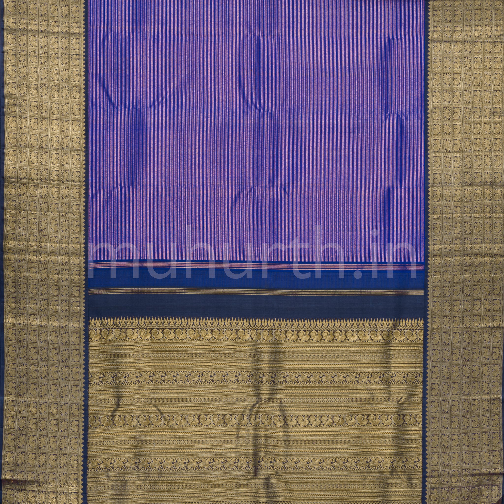Attributes: Violet Pure Kanjivaram Silk Saree with Vijaya