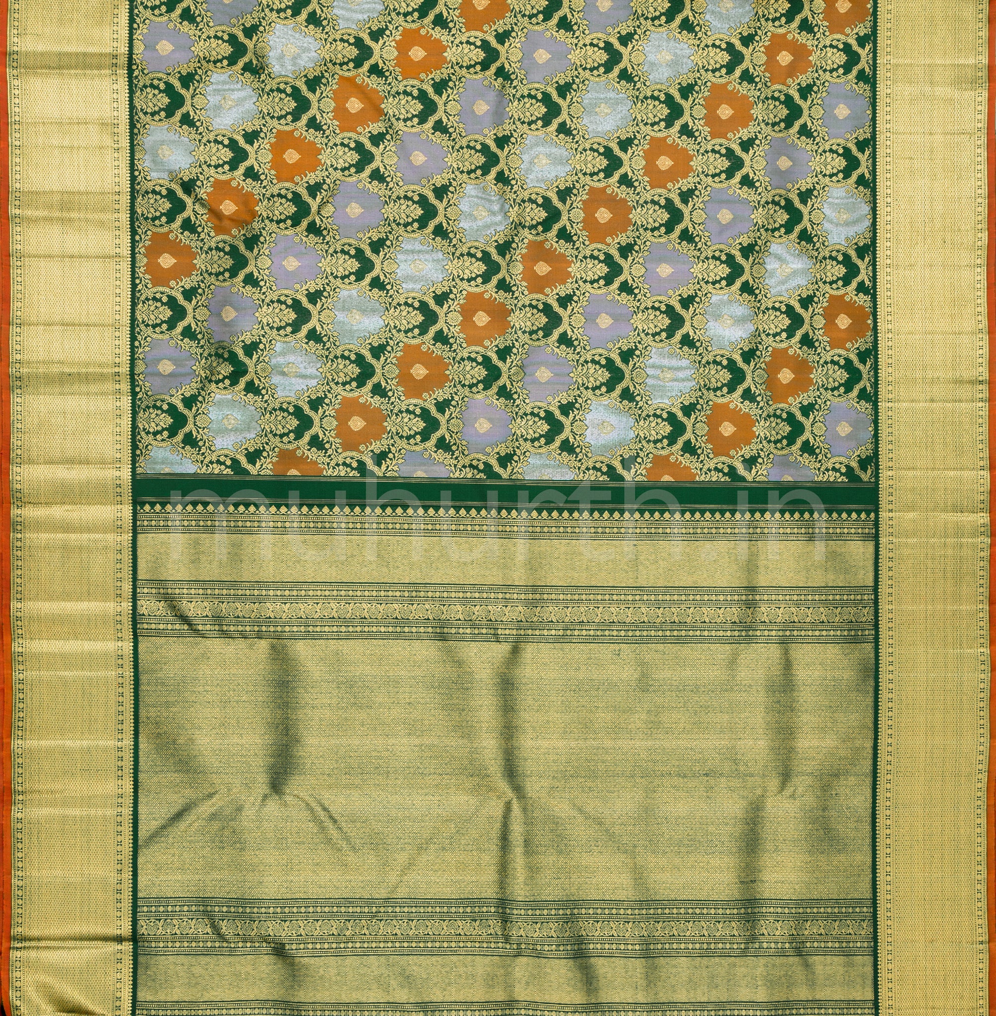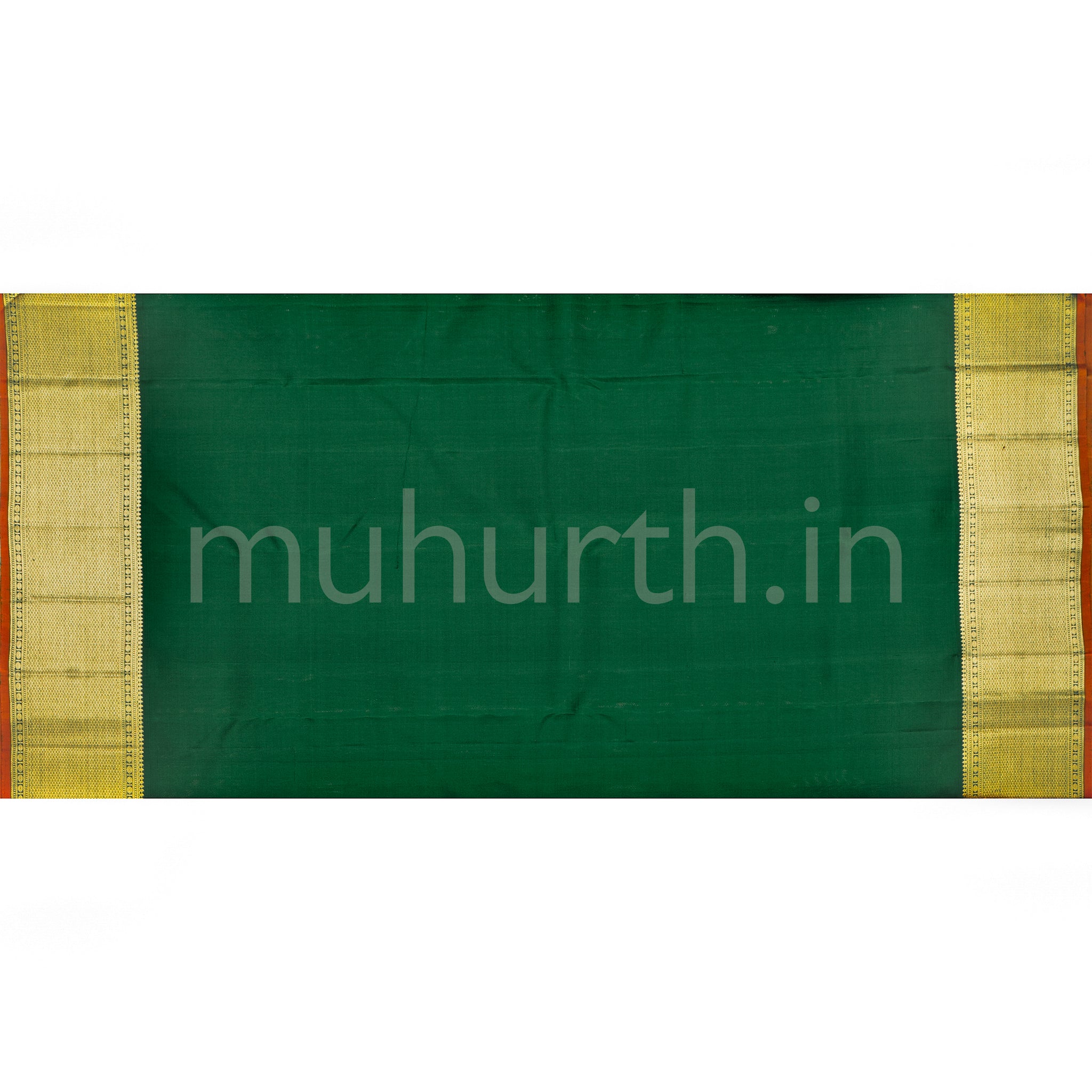 Attributes: Dark Green Rangkat Luxury Kanjivaram Silk Saree