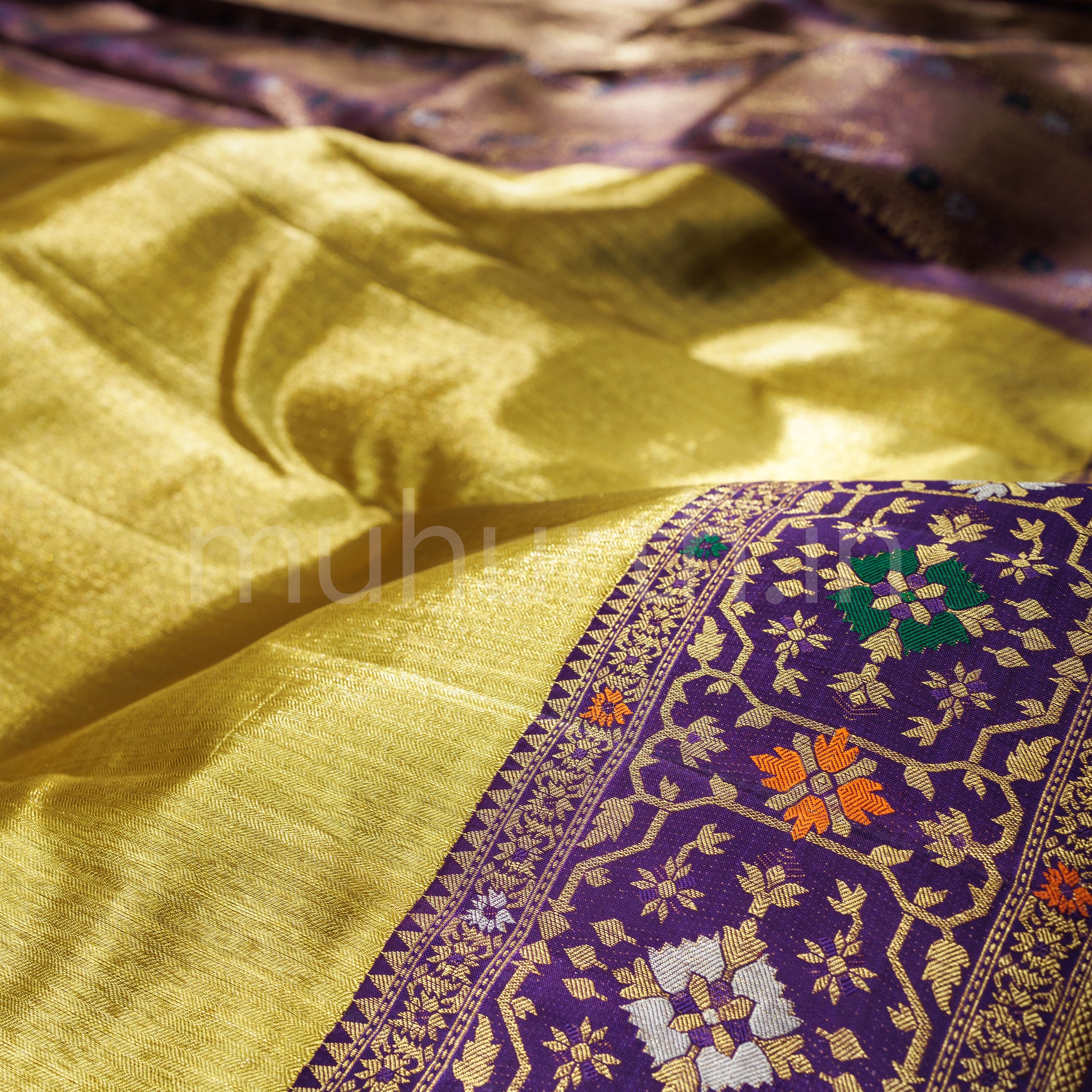 Golden Mustard Tissue Organza Pure Zari Kanjivaram Silk Saree with Meenakshi