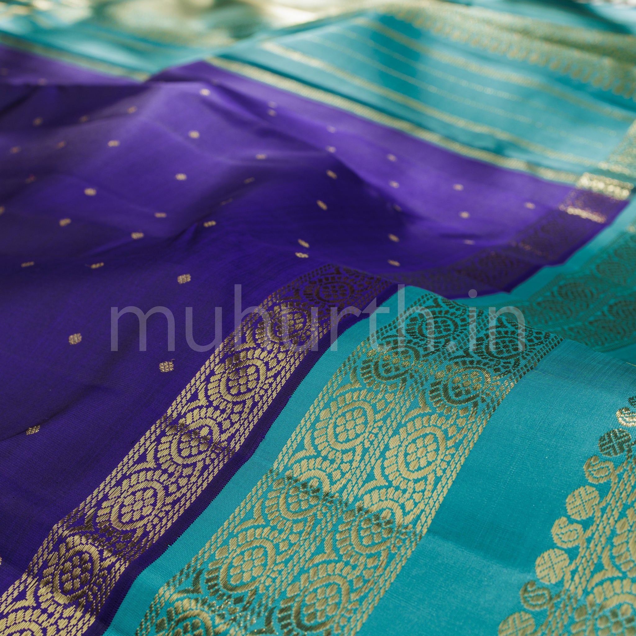 Attributes: Meenakshi Violet Pure Zari Kanjivaram Silk Saree with Ananda