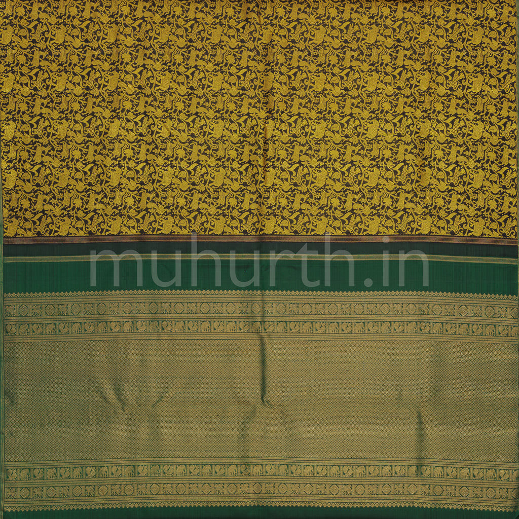 Attributes: Black Pure Zari Kanjivaram Silk Saree with Green