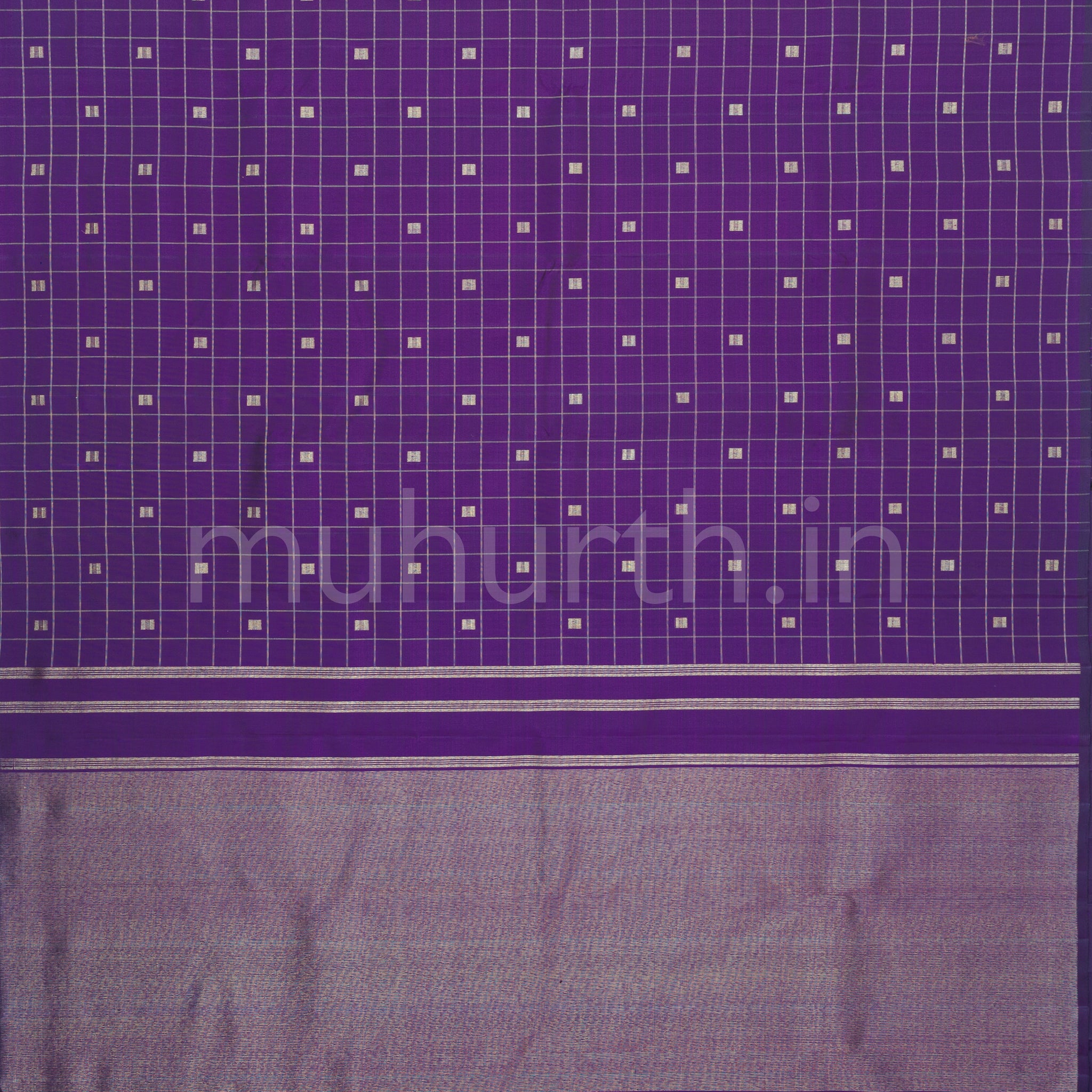 Draped in a rich dark Meenakshi hue, this Pure Zari Kanjivaram silk saree celebrates simplicity through thoughtful weaving. The pattu kattam body, accented with delicate geometric buttas, brings a quiet rhythm to the drape, keeping the design refined and uncluttered with no border. Finished with a soft, understated pallu and a plain blouse, the saree feels light, graceful, and easy to carry. A beautiful choice for everyday wear and intimate occasions, it offers timeless Kanjivaram elegance in its most effortless form.