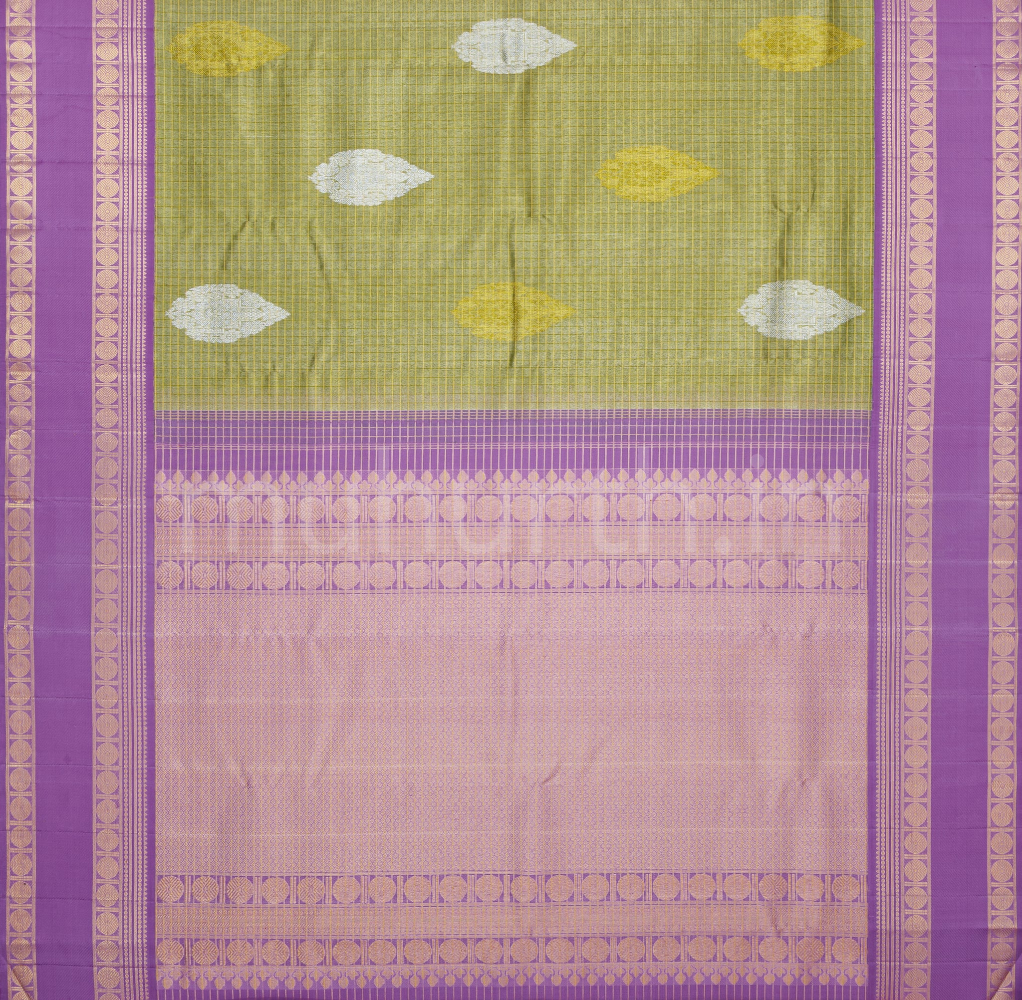 Attributes: Elaichi Pure Oraganza Tissue Kanjivaram Silk Saree with Lavender