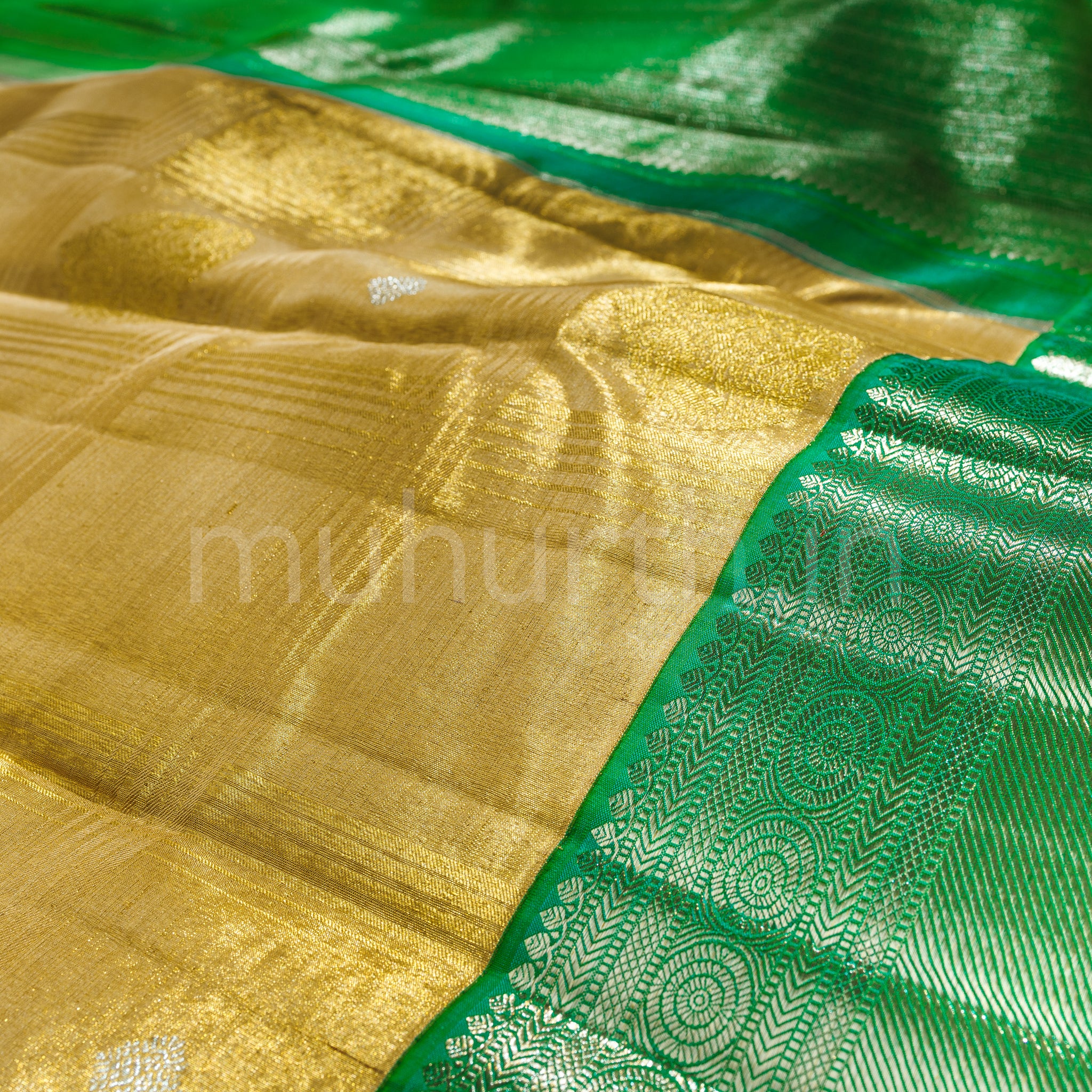 Technique: Organza Zari Checks with Buttas in Two Design in the Body with Traditional Korvai Getti Pettu Border