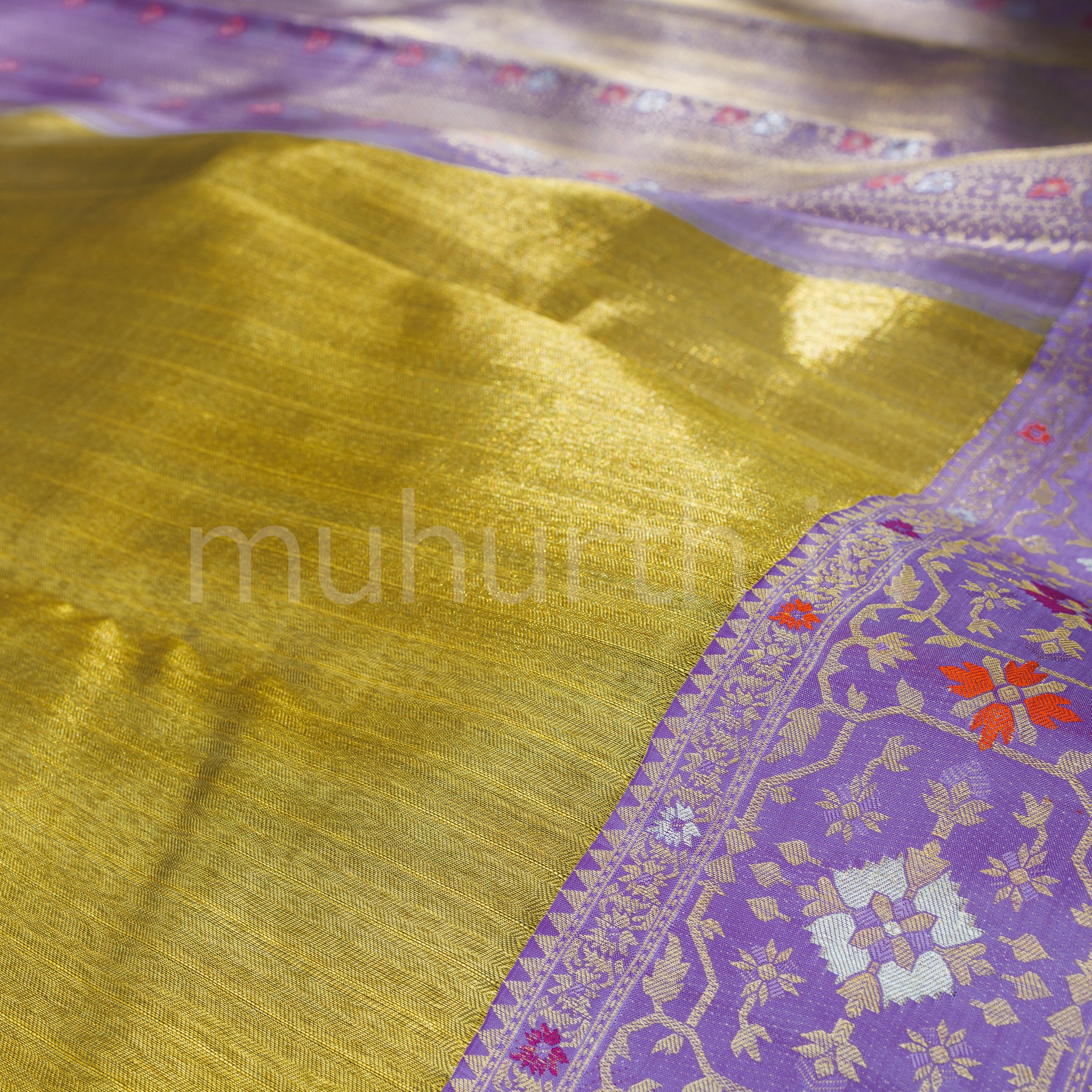 Attributes: Light Elaichi Tissue Organza Pure Kanjivaram Silk Saree with Lavender