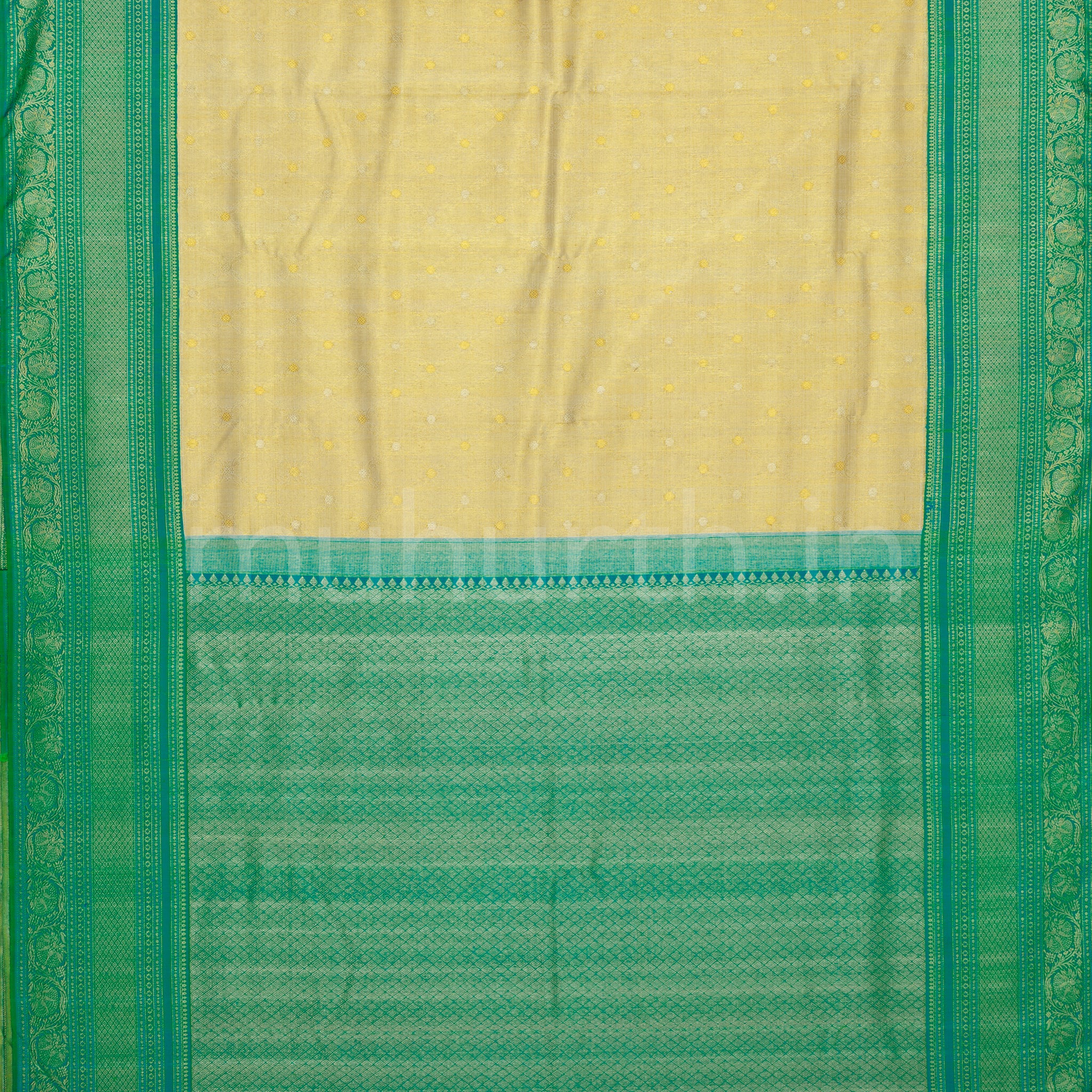 Attributes: Off-White Organza Tissue Pure Kanjivaram Silk Saree with Sea Green
