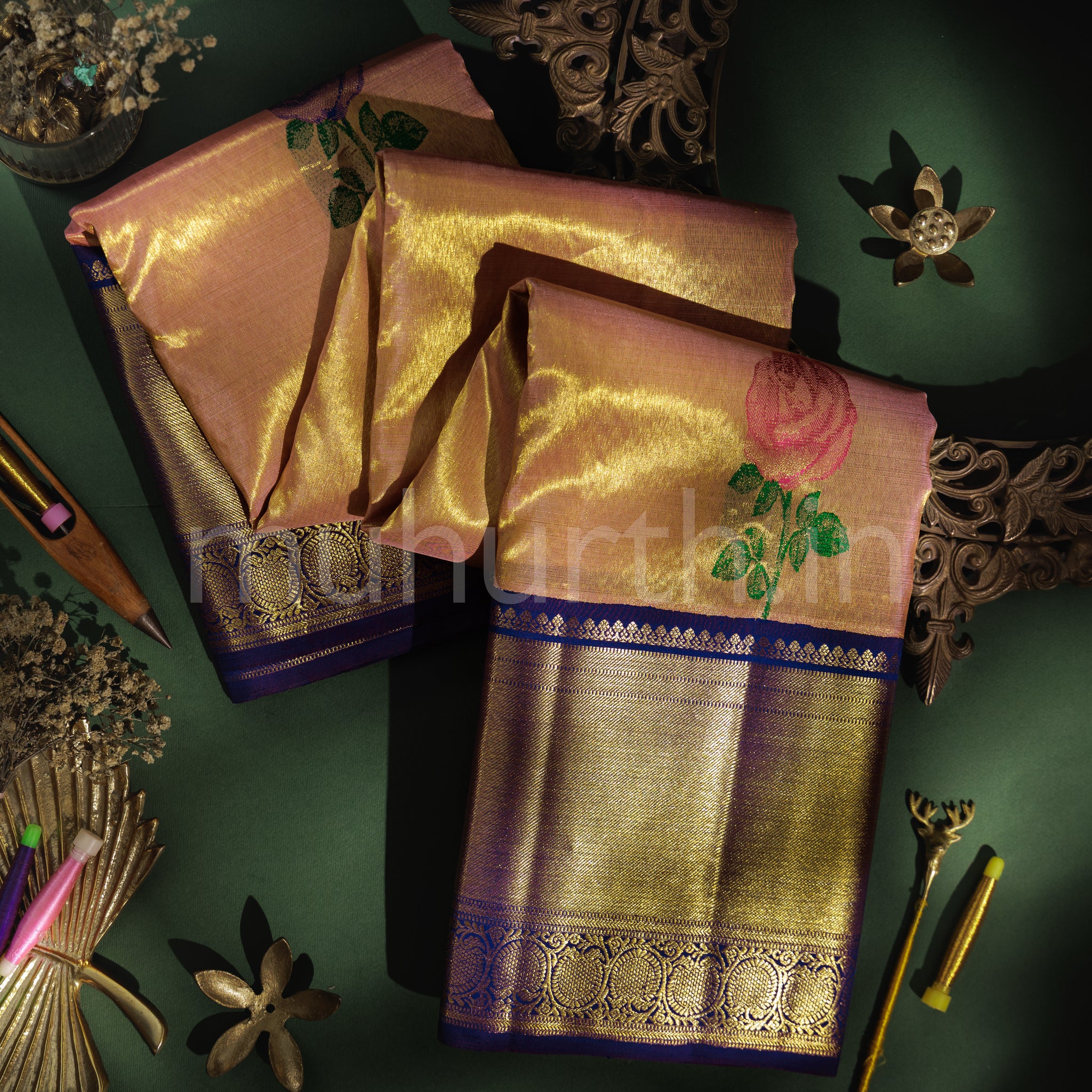 Peach Organza Pure Kanjivaram Silk Saree with Meenakshi