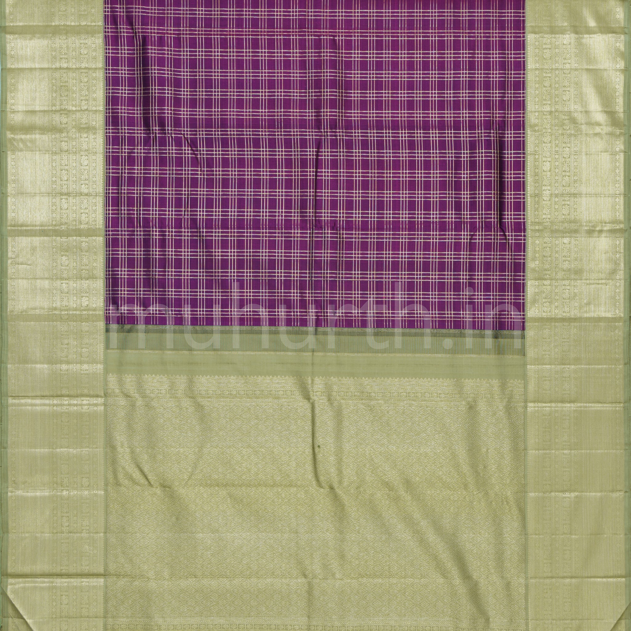 Attributes: Magenta Pure Kanjivaram Silk Saree with Elaichi