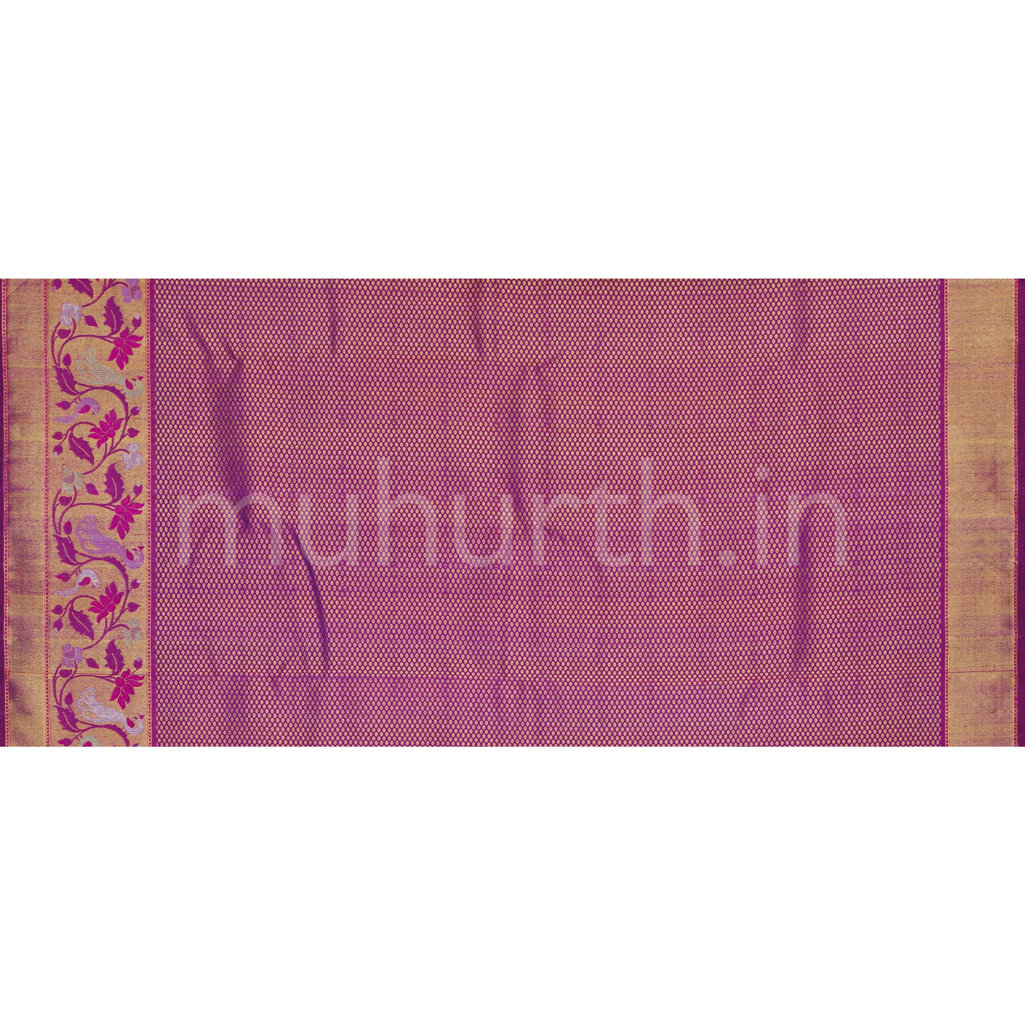 Technique: Zari Brocade in the body with Paithani Inspired Turning Border with Extensive Meenakari Workmanship