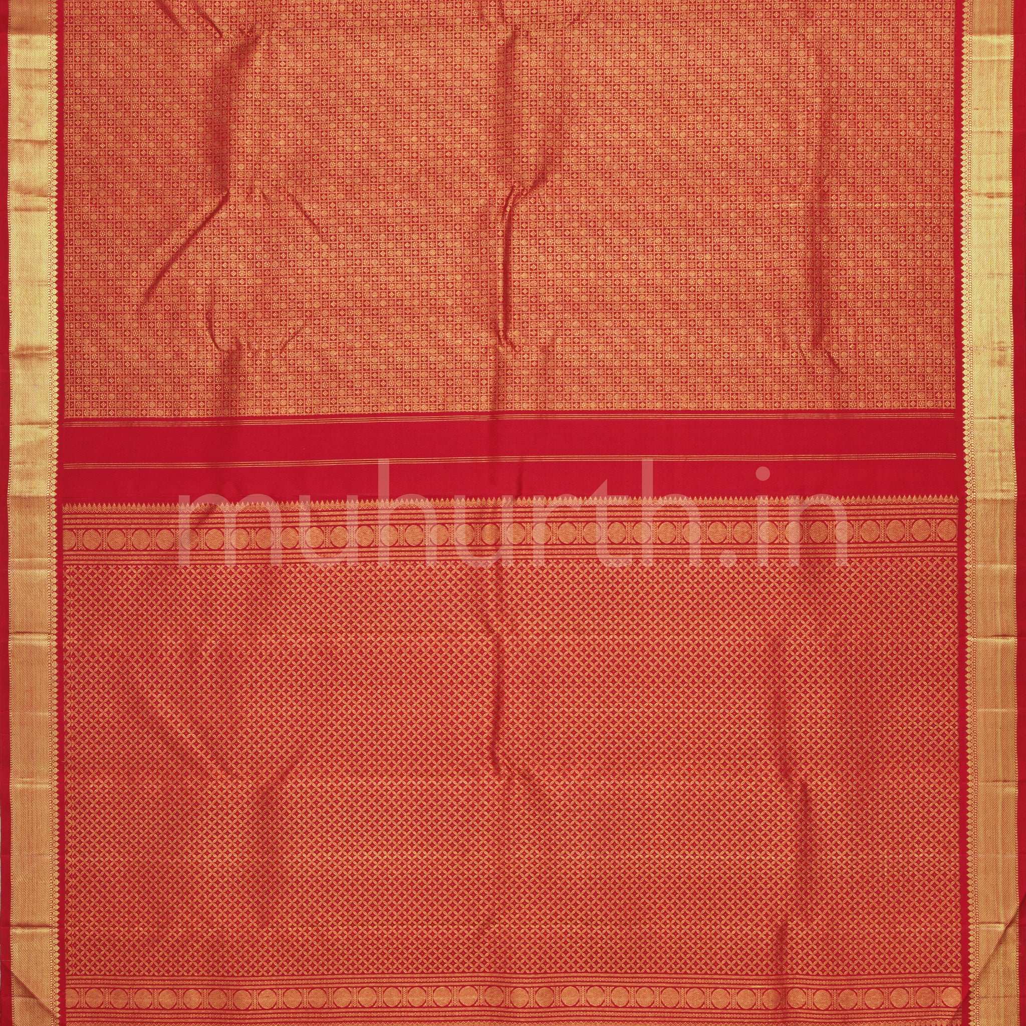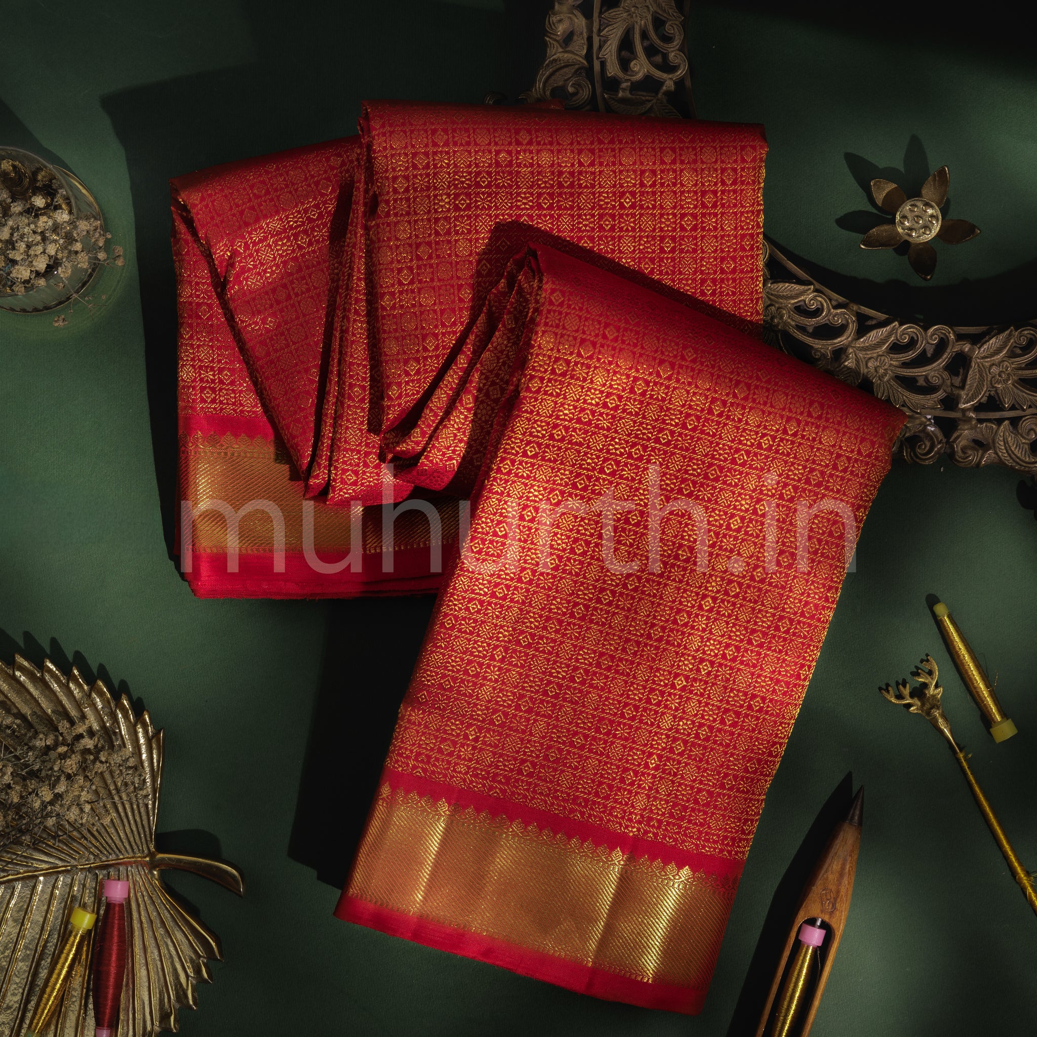 Attributes: Bright Red Pure Kanjivaram Silk Saree