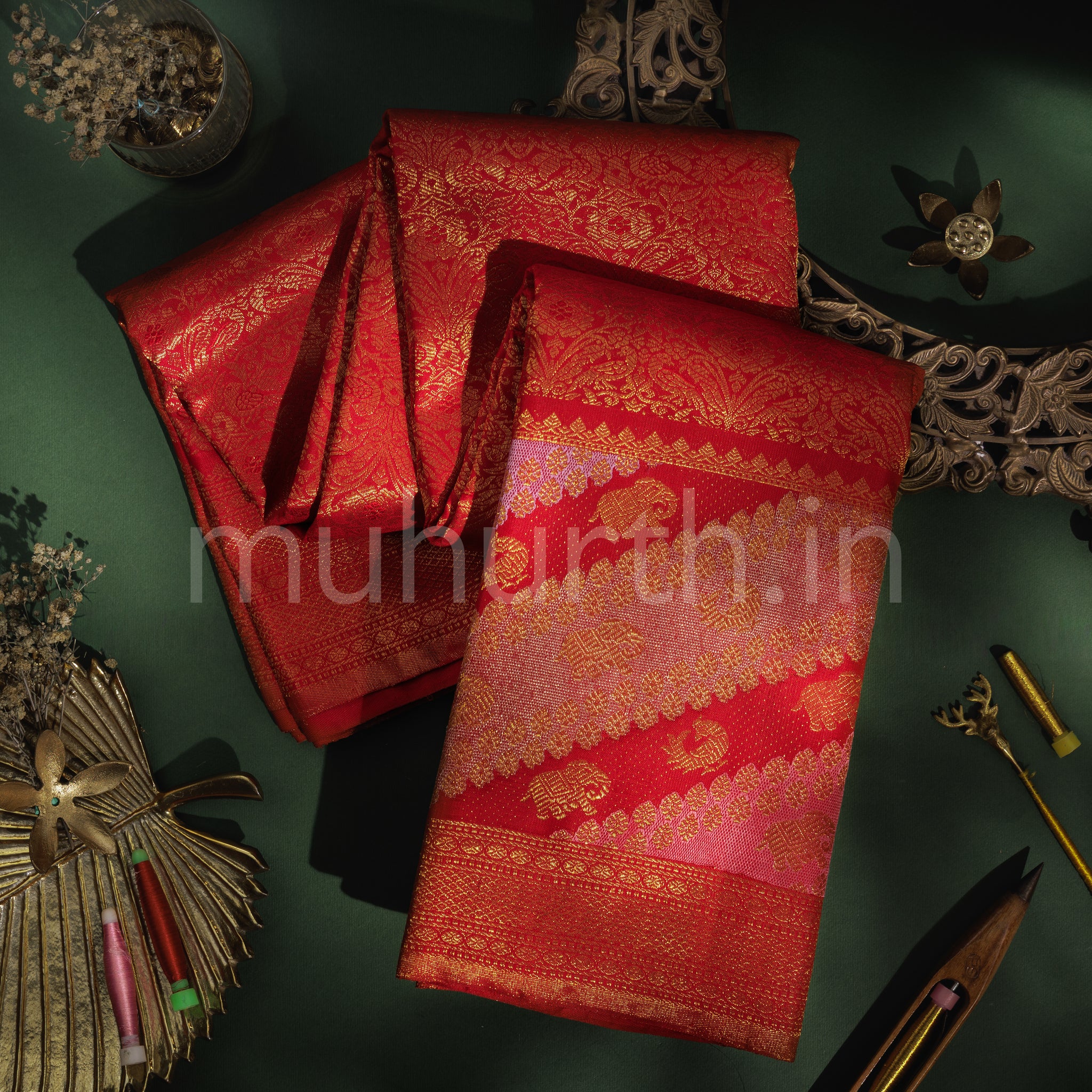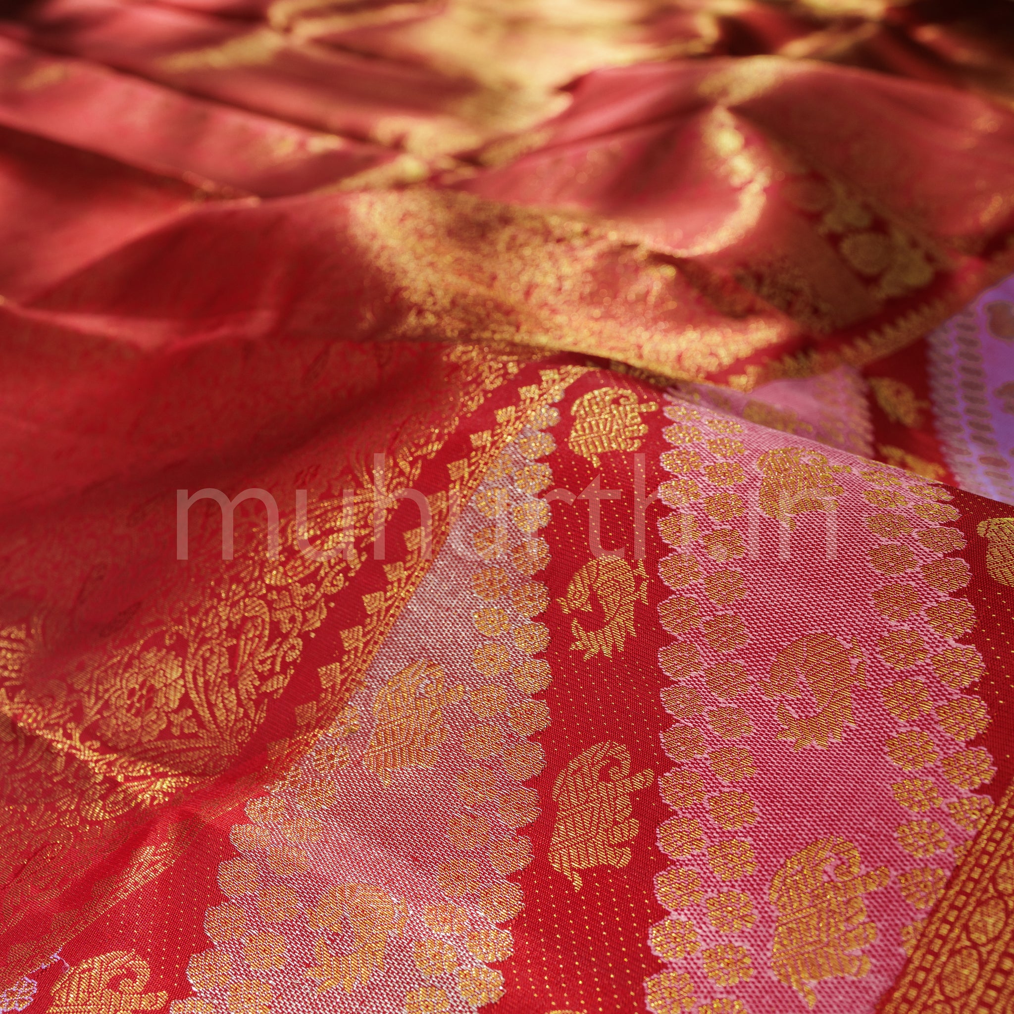 Bright Red Pure Kanjivaram Silk Saree with Rangkat Border