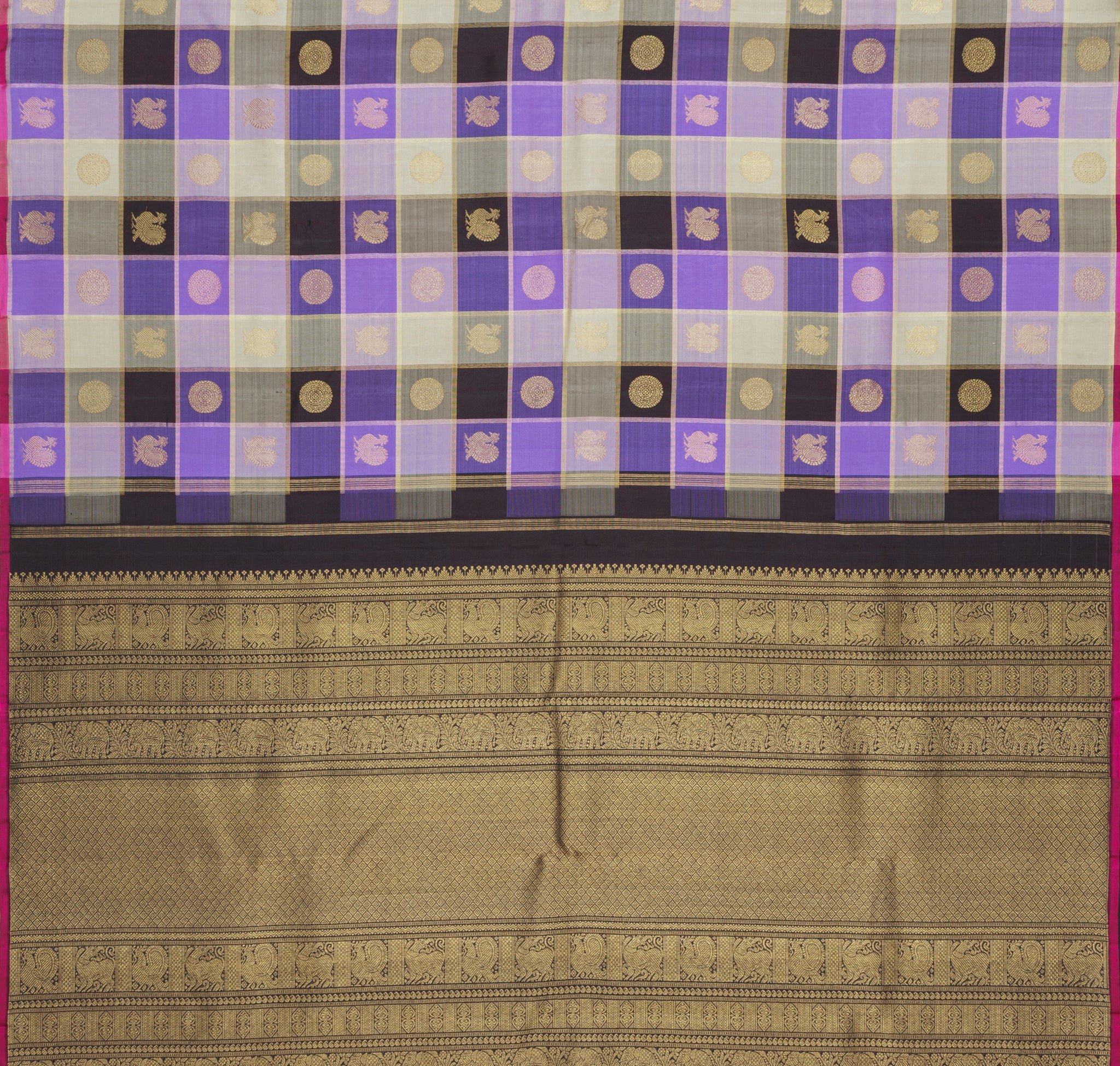Attributes: Multi-Colour Checks Pure Zari Kanjivaram Silk Saree