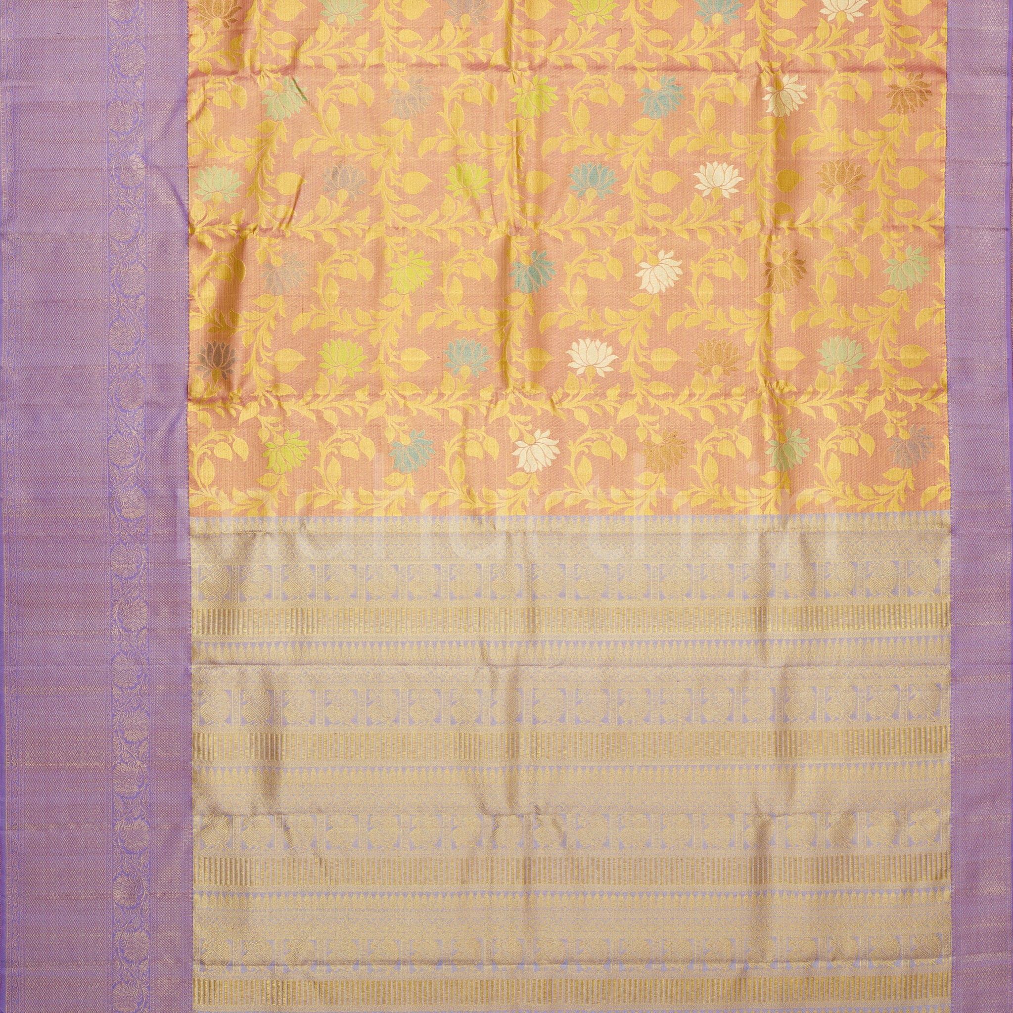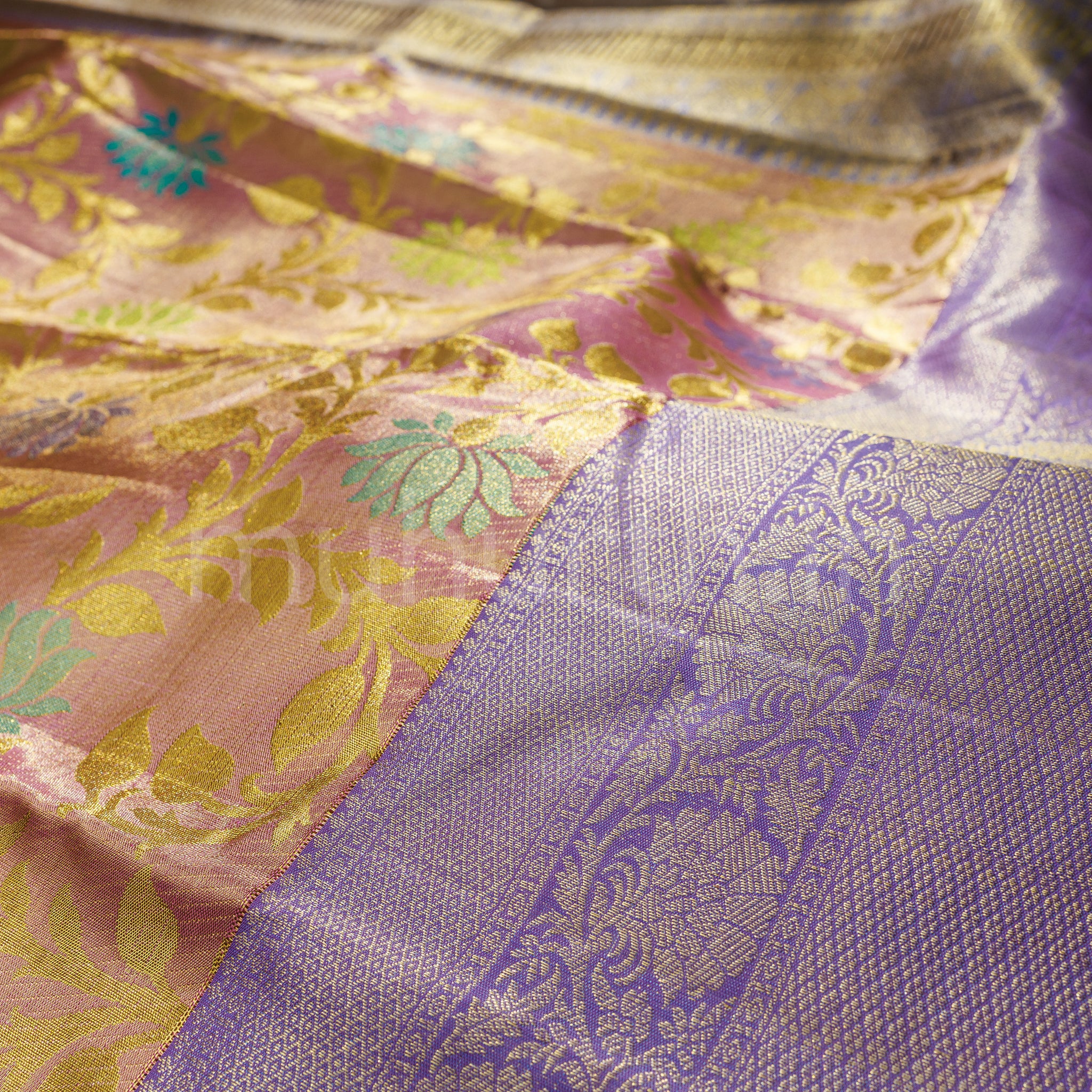 Attributes: Pink Luxury Tissue Pure Kanjivaram Silk Saree with Lavender