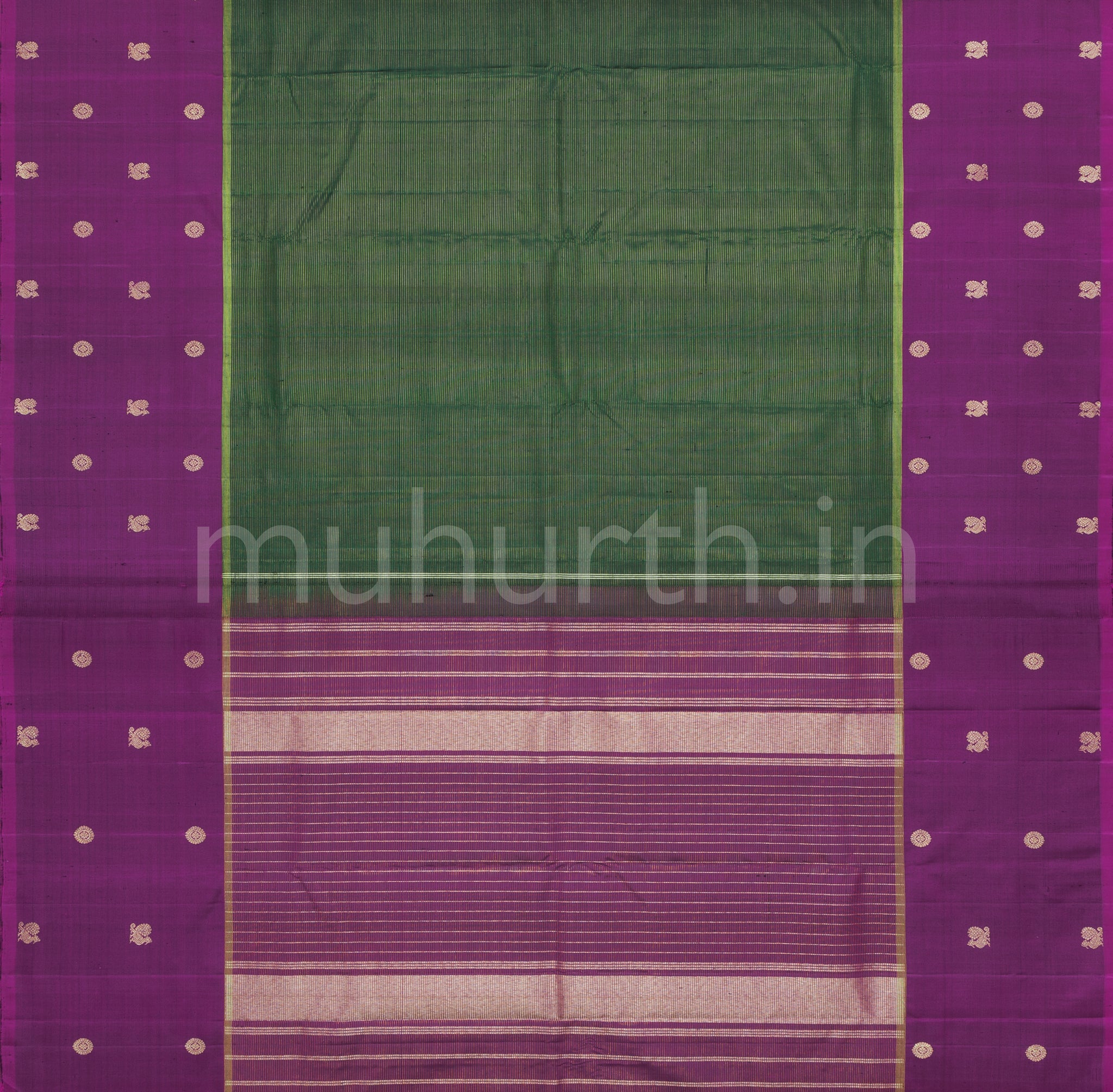 Attributes: Green Pure Kanjivaram Silk Saree with Magenta