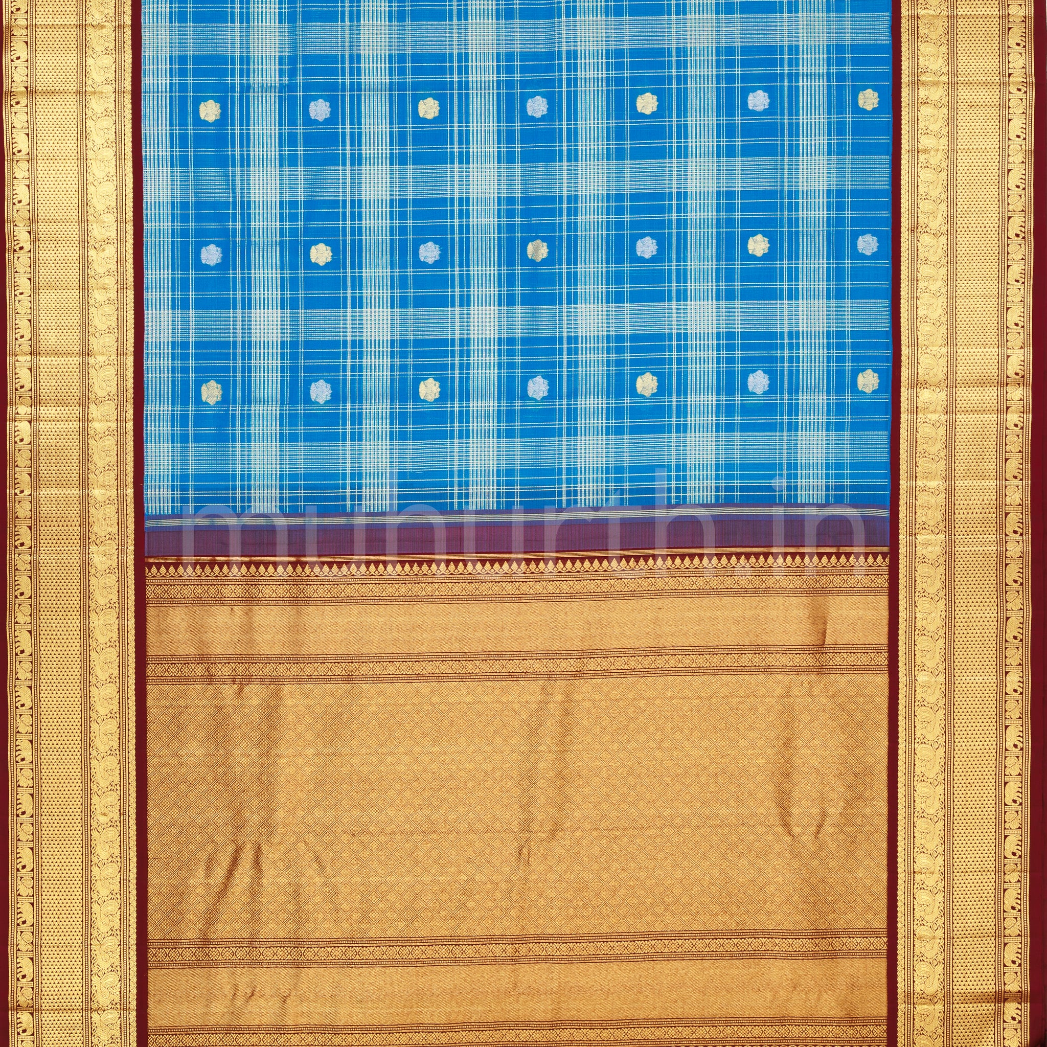 Technique: Kora Organza with Veldhari Checks & Butta in the body with Traditional Korvai Getti Pettu border