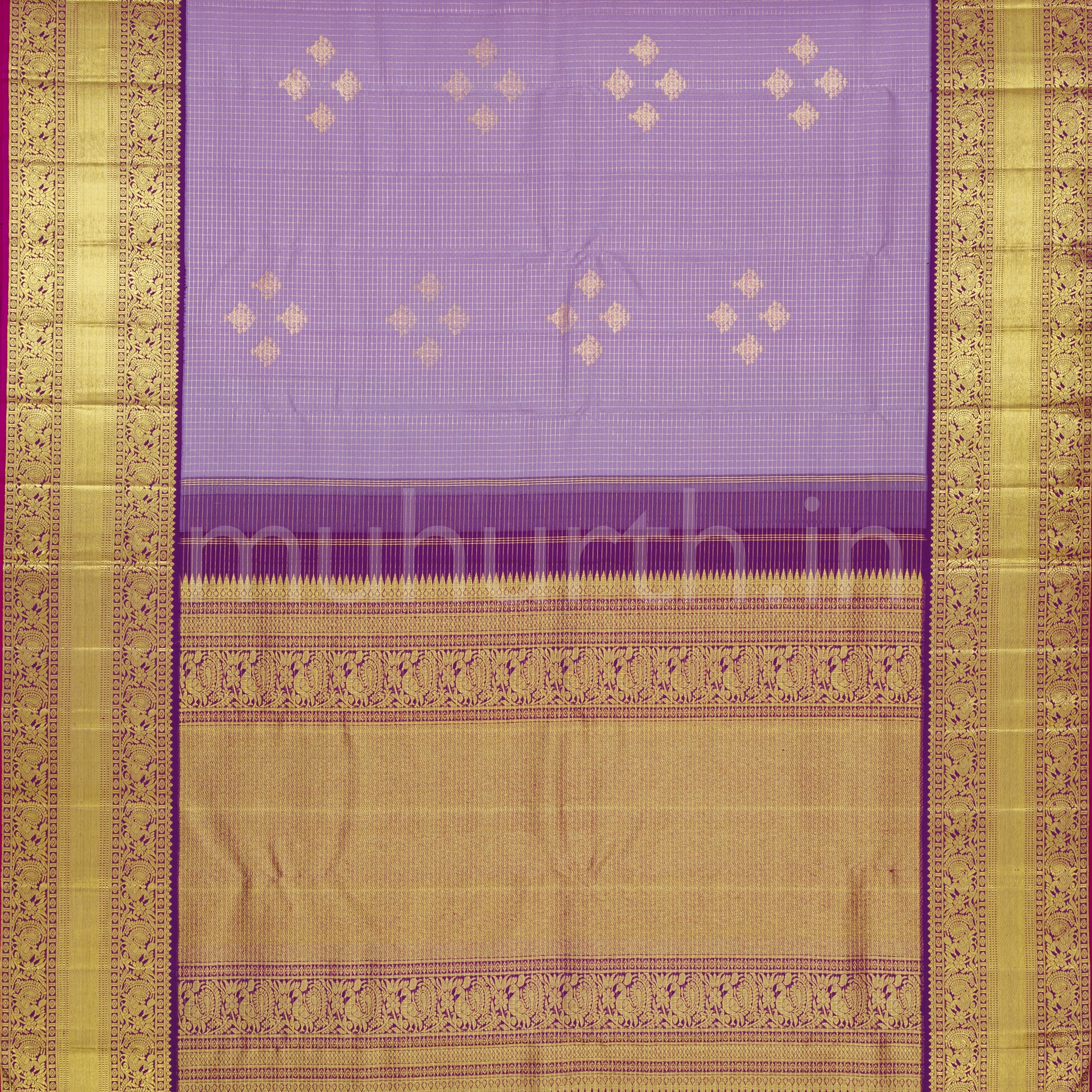 Attributes: Lavender Pure Kanjivaram Silk Saree with Meenakshi Violet
