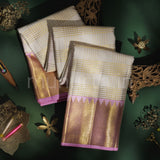 Attributes: Off - White Veldhari Pure Kanjivaram Silk Saree with Pink