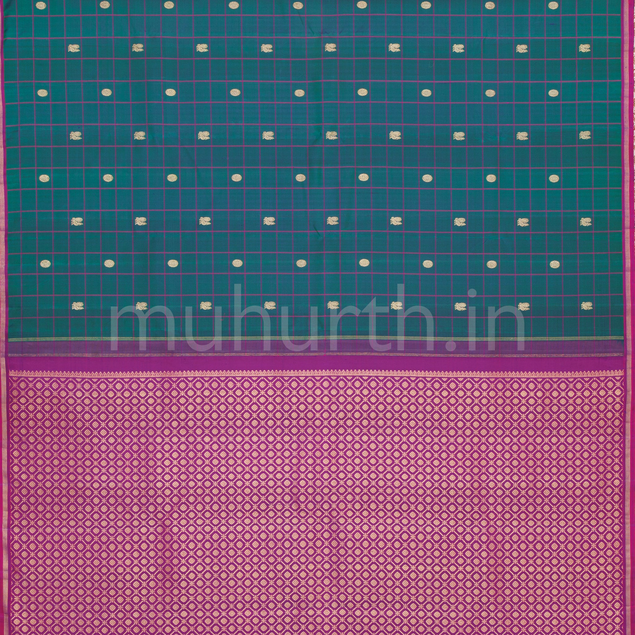 Attributes: Peacock Green Pure Kanjivaram Silk Saree