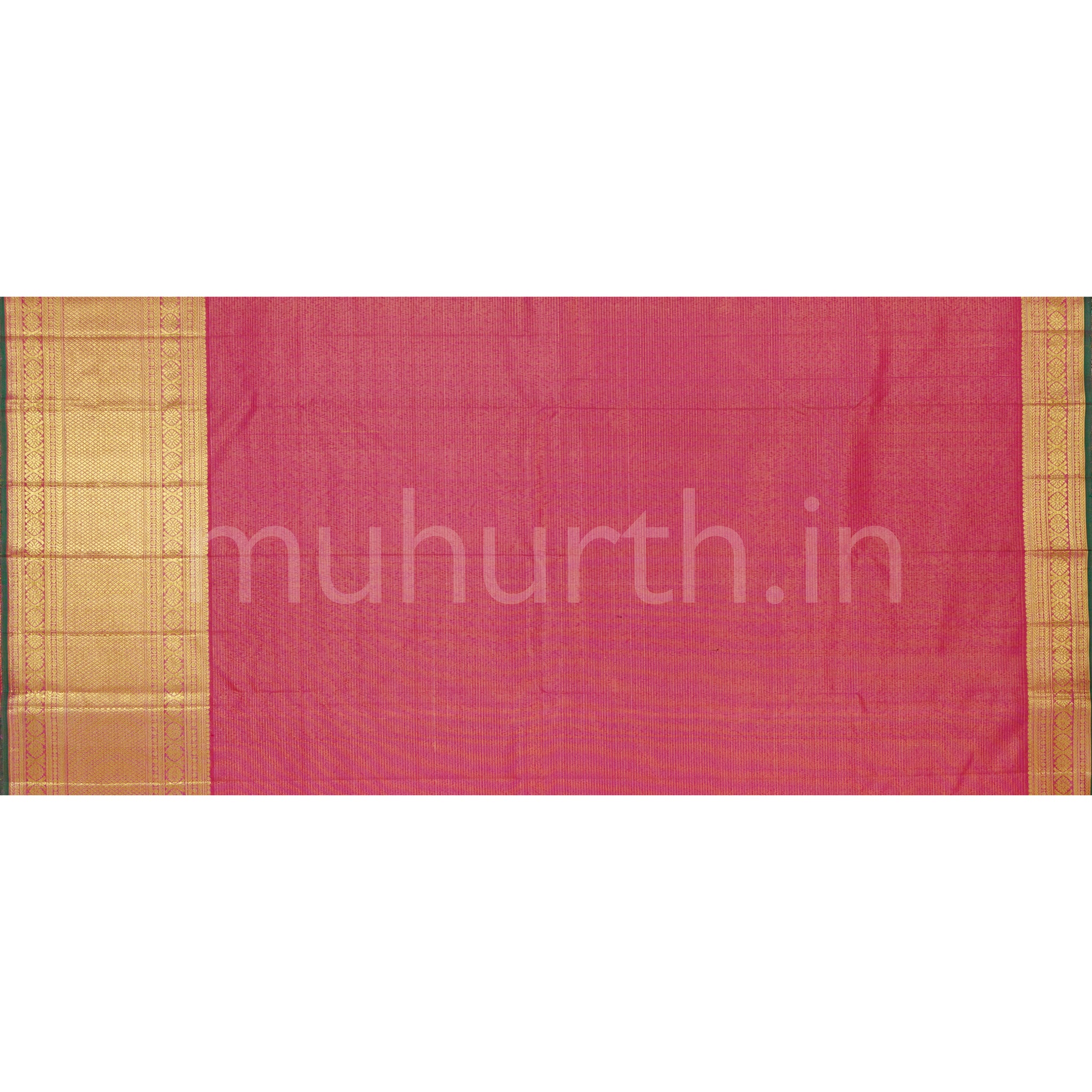 Salmon Orange Vaira Oosi Pure Kanjivaram Silk Saree with Pink